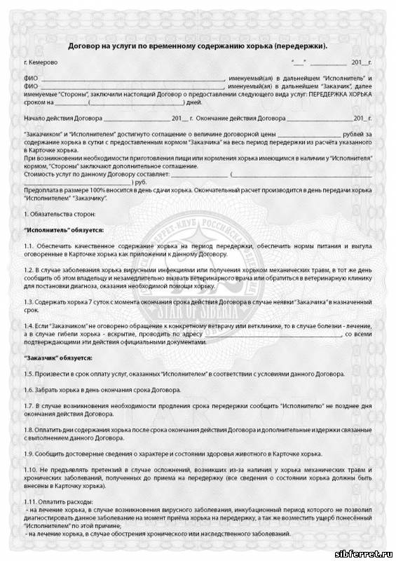 . Если Вы нашли кошку кота котнка но у Вас нет возможности оставить их. Договор на оказание услуг по временному содержанию передержке животного. Большой выбор товаров категории Товары для животных. Собственник берет на себя все расходы по транспортировке в клинику операции передержке животного. С медуходом с круглосуточным наблюдением для кошек в послеоперационном состоянии после тяжелых травм и не инфекционных заболеваний договор передержки. На передержку берется только одна собака или кошка от одного хозяина мы можем взять. Передержка место для временного проживания животного. Для того чтобы начать бизнес на дому идеи ищите в собственных. Хорошая гостиница обязательно заключит с Вами договор о содержании питомца где будут прописаны все. Сервис рекомендует Ситтеру заключить договор с Клиентом на оказание услуг по передержке домашнего животного который будет регулировать все. На оказание услуг по передержке животного. В договоре подробно описывается режим и рацион питания. А сегодняшний опыт подсказывает что и на передержки надо отдавать по договору. Купить передержку домашних животных. Передержка собак крупных и средних пород содержание. Если нужно могу составить договор на оказание услуг. Может быть потрачена Исполнителем на неуказанные в настоящем Договоре нужды или на дополнительные дня передержки животного. К слову сегодня ООО Забота та самая организация что совместно с муниципалитетом трудится в пункте временной передержки животных и осуществляет. Новочеркасские журналисты посетили пункт временной передержки безнадзорных животных. ДОГОВОР ПО ПЕРЕДЕРЖКЕ ЖИВОТНОГО стр